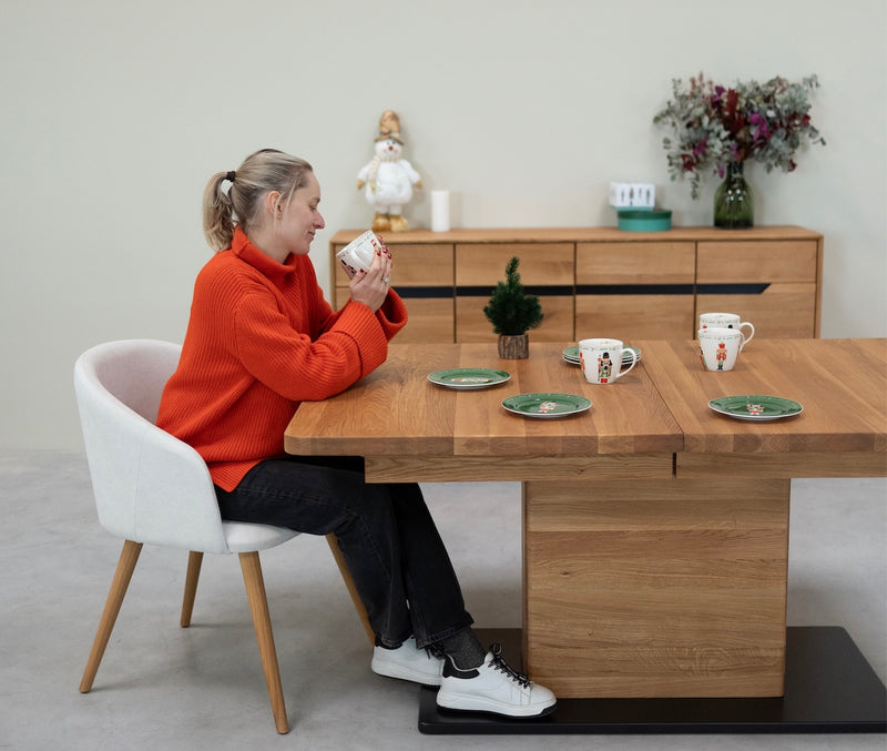 Si las limitaciones de espacio son un factor importante, opta por una mesa de comedor extensible para aprovechar al máximo un espacio más pequeño. También está la cuestión de si las mesas redondas o rectangulares ocupan más espacio, por lo que es mejor considerar esto también. Las mesas extensibles consumen menos espacio para empezar y pueden extenderse fácilmente cuando sea necesario para acomodar a más personas, por lo tanto, con respecto a la eficacia del espacio, la mesa extensible surge como la clara ganadora.