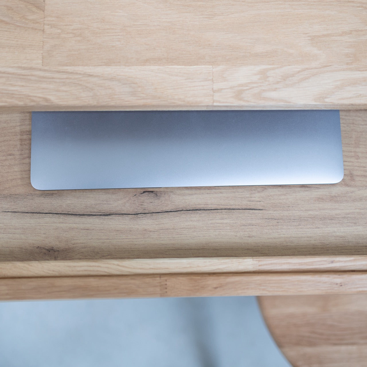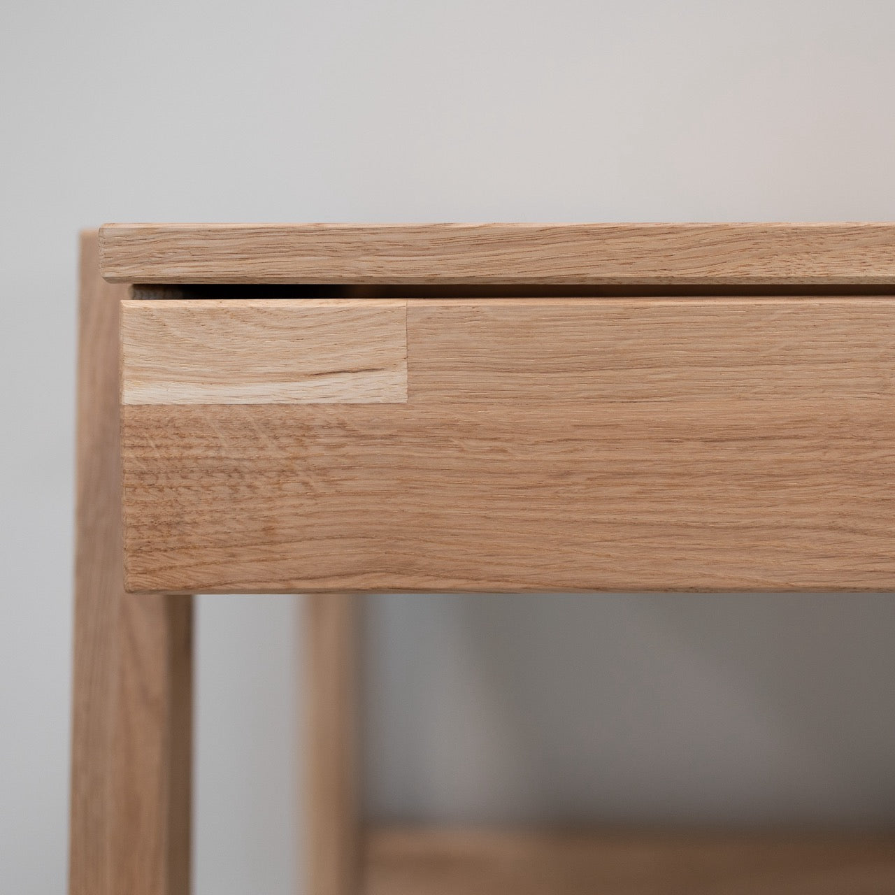 El escritorio compacto "Eric" de roble macizo es perfecto para un espacio de trabajo elegante y cómodo. Fabricado en roble sostenible de alta calidad con acabado en aceite, añade calidez natural al ambiente.