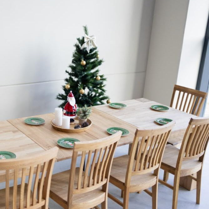 Revive tu comedor con el conjunto Ontario: mesa extensible de roble macizo con 6 sillas Provance en color natural. Encuentra elegancia y funcionalidad para tu hogar.