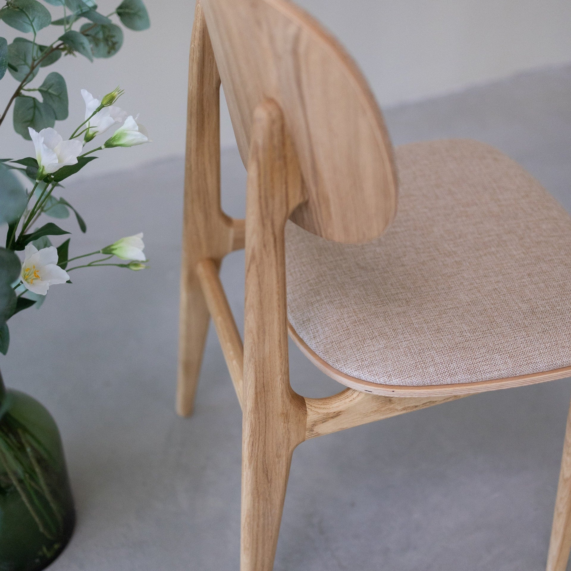 La silla "Varde" tiene un diseño muy actual y ecléctico que aportará personalidad al espacio. Su tapizado en gris claro combina fácilmente con cualquier color.