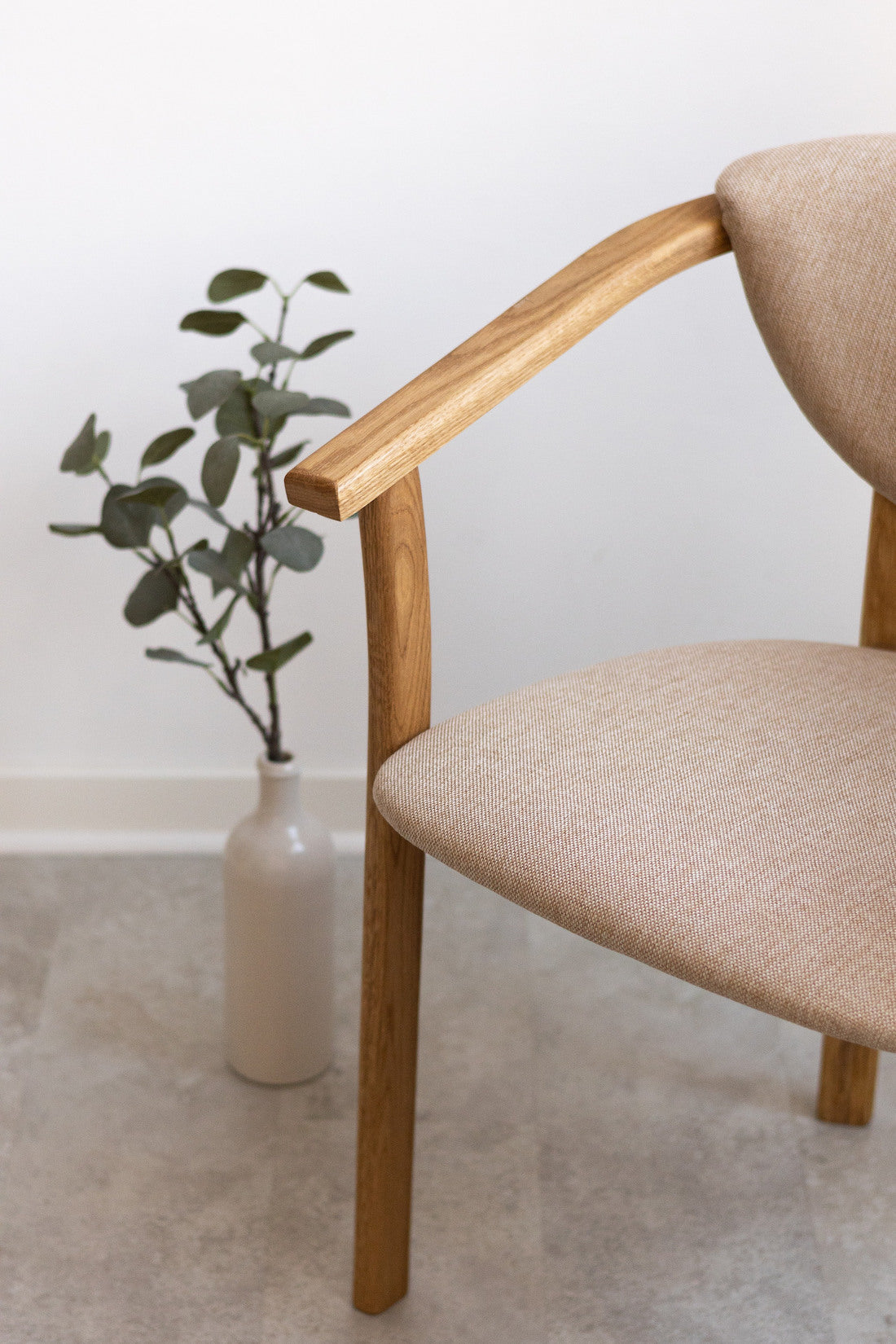 Nuestra Silla de Madera de Roble "Alexis" es una pieza con mucho carácter, sigue las líneas naturales y casi orgánicas de última tendencia. Con su asiento y respaldo tapizado en Beige que aporta ese toque de elegancia a tu salón o comedor.